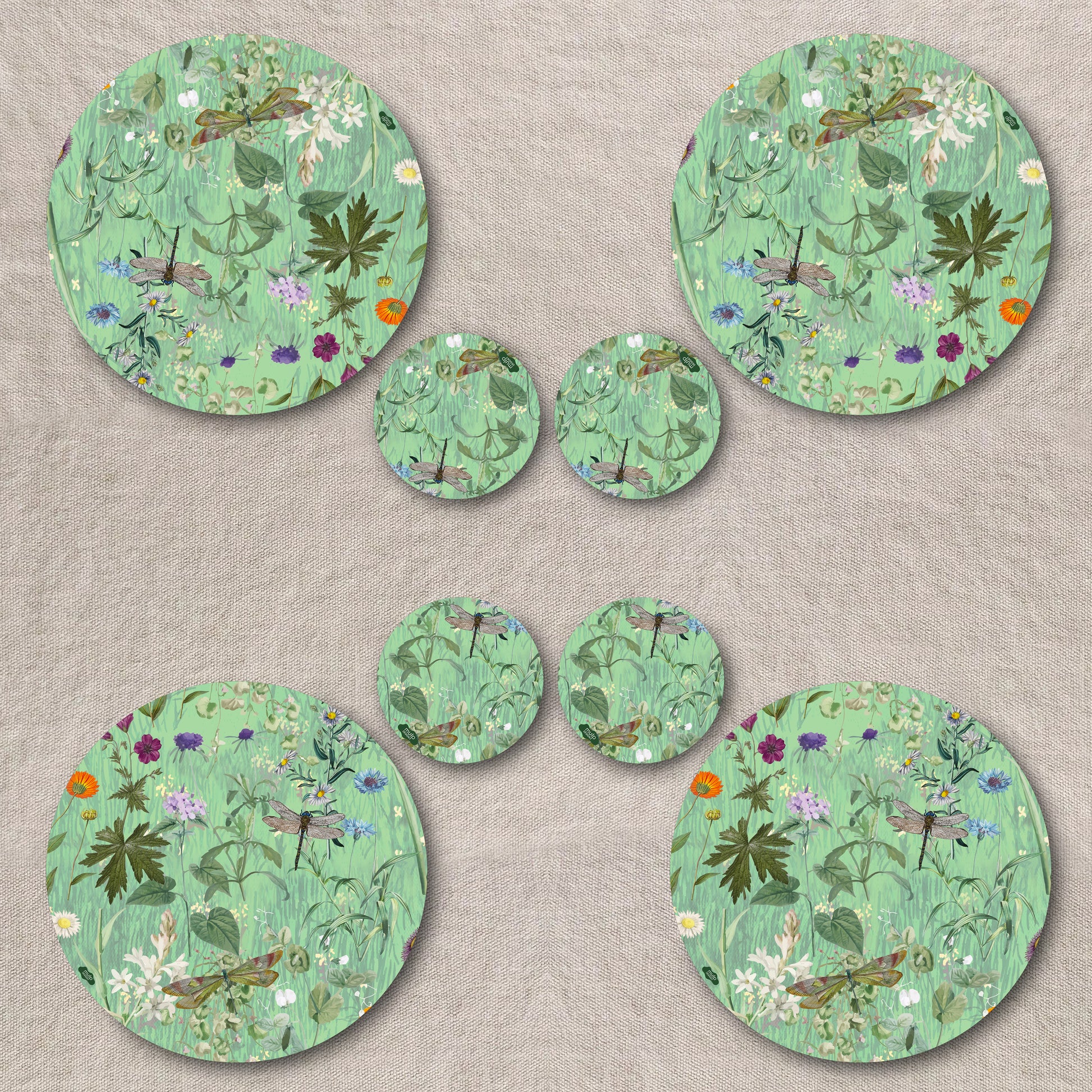 Ogni grafica, su entrambi i lati, è disegnata a mano e stampata su base in legno e carta, rifinita e trattata con una vernice idro-olio repellente. Oggetti pensati per durare, nati per dare carattere e dinamicità alla tua tavola, anche e soprattutto grazie alla loro duplice grafica.